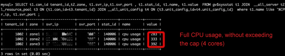 create resource unit test_unit2 max_cpu 4, max_memory '4G', max_iops 1280, max_disk_size 53687091200, max_session_num 128, MIN_CPU=4, MIN_MEMORY='4G', MIN_IOPS=1280; create resource pool sysbench_pool unit = 'test_unit2', unit_num = 1, zone_list=('zone1','zone2','zone3'); create tenant sysbench_tenant resource_pool_list=('sysbench_pool'), charset=utf8mb4, replica_num=3, zone_list('zone1', 'zone2', 'zone3'), primary_zone=RANDOM, locality